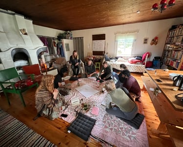 Nestled between birch and pine, Athari is a quiet breath of nature—open, grounding, and alive. We gather by the lake, where the waters mirror the sky and the days stretch long with northern light. This is an old family cottage, once home to our host’s lineage, now holding space for new stories to unfold.